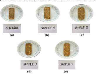 Overall, the results demonstrate that substitution of rice flakes flour with 20 percent orange peel and pomace powder significantly improved dietary fibre and mineral content while reducing fat and moisture levels. These changes contribute to an enhanced nutritional profile without compromising sensory acceptability, supporting the use of citrus by-products as functional ingredients in value-added snack bar formulations.