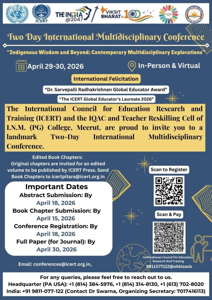 The International Council for Education Research and Training (ICERT) and the IQAC and Teacher Reskilling Cell of I.N.M. (PG) College, Meerut, are proud to invite you to a landmark Two-Day International Multidisciplinary Conference.