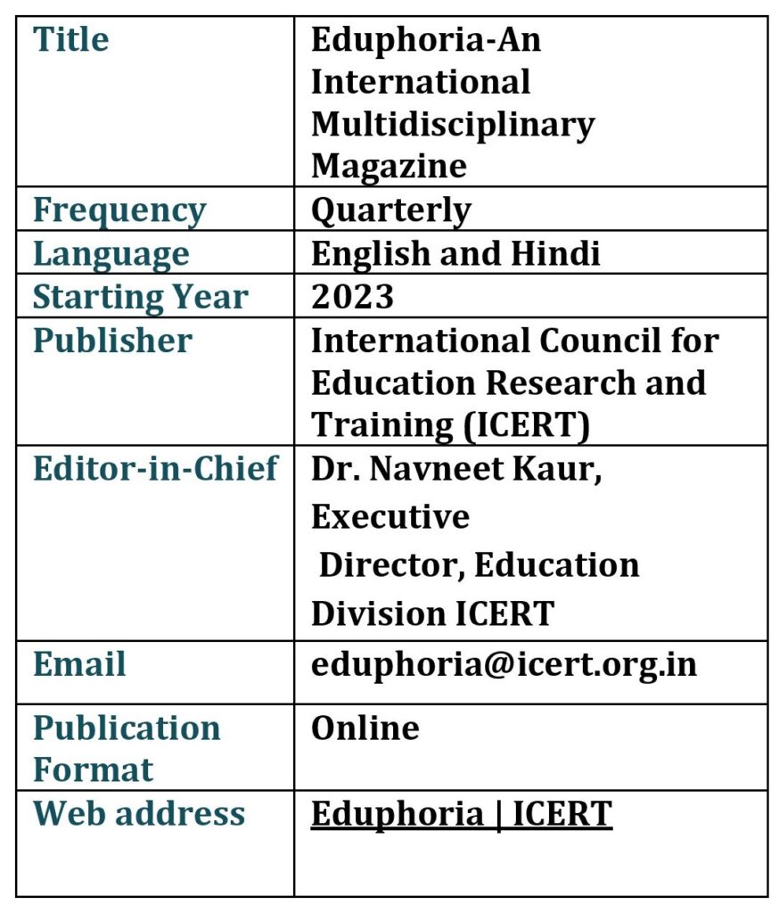 Eduphoria is an International Multidisciplinary magazine especially educational magazine. Eduphoria is an international scholarly/ academic, peer-reviewed magazine for multiple age readers. Eduphoria is a forum for the exchange of the innovative ideas, data and information related to the multiple disciplines including science, social sciences, technology and engineering, psychological science, health, computer science, education, management, defence education, political science, development of education, and other disciplines for the welfare of education community. All age group writers, budding writers, budding artists, scholars, professional from different spheres, students, and institutional staff could contribute as reader or contributors. The magazine is appropriate for anyone who is interested and invested in the positive changes that are happening in education today including educators, educational leaders, education consultants, community-based organization staff, anyone interested in innovative ideas and practices, global education advocates, foundations, government agencies, businesses that support children’s education. We also invite institutions to publish their events, programs reports, highlights, forthcoming programs news, student talks, cover stories etc. We resist political articles, articles on gender, caste, religion discrimination, content against the law of any country or related.